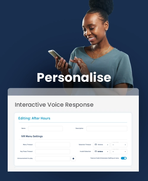 Customise phone numbers, business hours, caller-ID, voicemail and more.